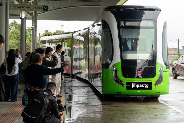 A chuvosa manhã desta terça-feira (9) marcou a primeira viagem do Bonde Urbano Digital (BUD), novo sistema de transporte urbano que o Governo do Paraná implementa