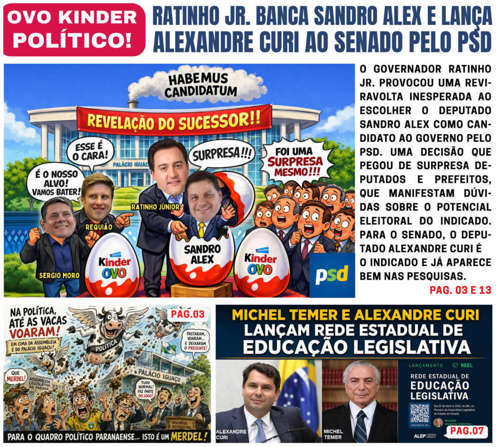 A escolha do governador Ratinho Junior caiu como um verdadeiro “OVO KINDER” no colo da classe política paranaense. Teve gente que achou a surpresa interna