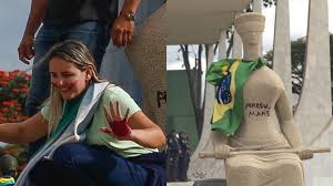 Read MoreFilmada pichando a estátua da Justiça em frente ao Supremo Tribunal Federal (STF) em 8 de janeiro, em Brasília, a