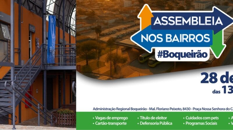 Read MoreA Regional do Boqueirão recebe nesta quarta-feira (28), das 13h às 22h, a Assembleia nos Bairros. Organizada pela Assembleia Legislativa