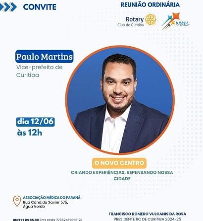 Read MoreO Rotary Club de Curitiba sob a presidência do empresário Francisco Romero convida para a 43ª reunião ordinária no próximo