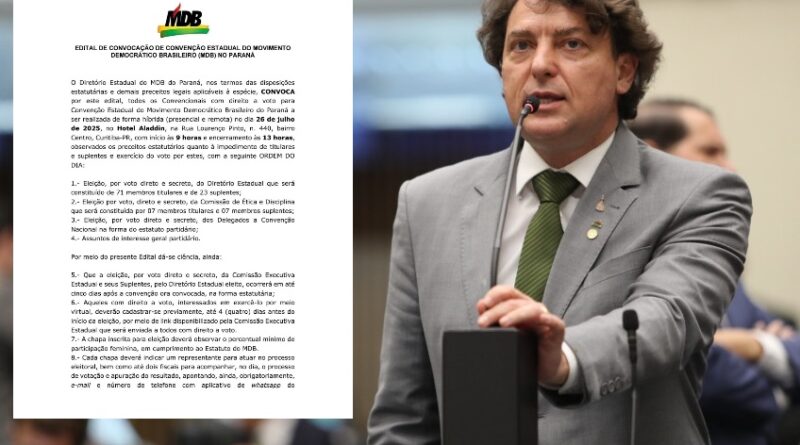 Read MoreO presidente do MDB estadual Anibelli Neto publicou o edital de convocação para os militantes e convencionais do partido para