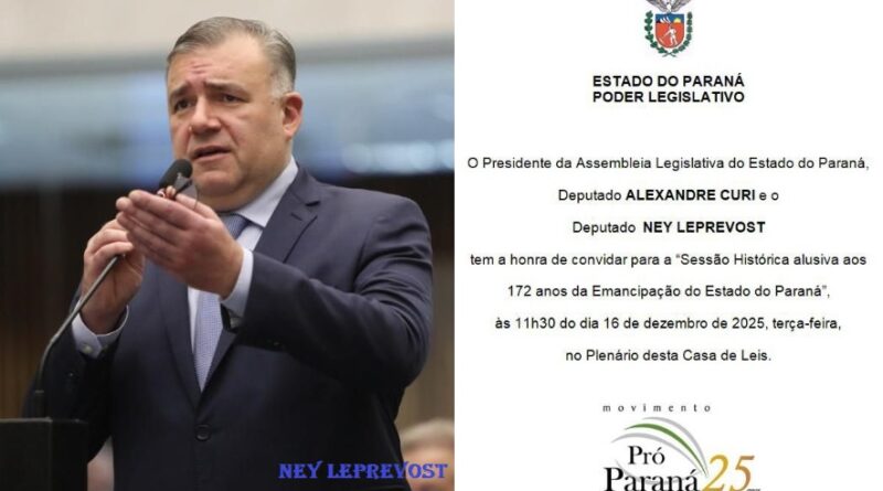 Por iniciativa dos deputados Ney Leprevost e Alexandre Curi, a Assembleia Legislativa do Paraná realiza, nesta terça-feira (16), às 11h30,