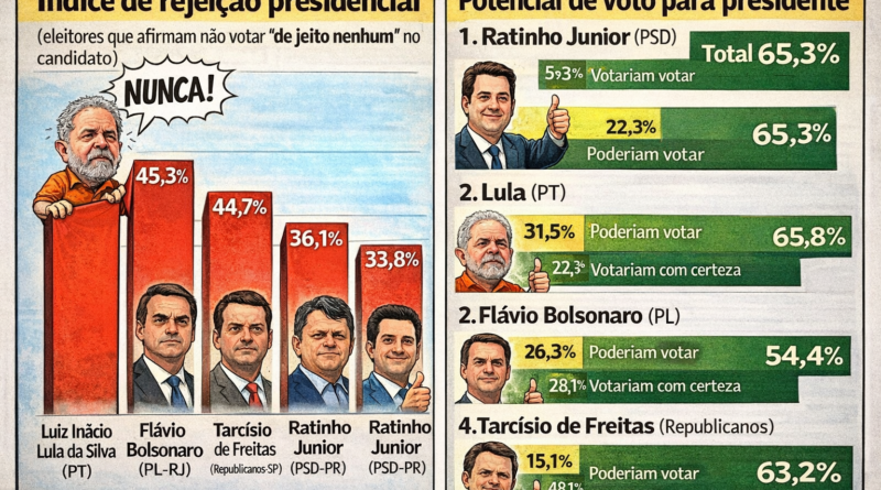 Read MoreLevantamento divulgado pelo instituto Paraná Pesquisas nesta sexta-feira (30) aponta os índices de rejeição e potencial de voto de nomes