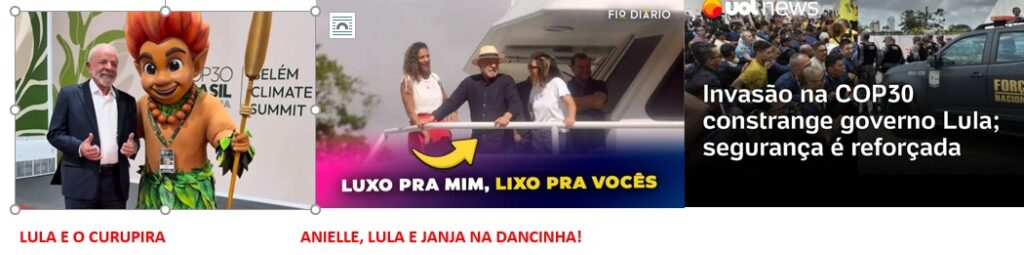 Porque não dizer que tudo se resumiu em fracasso, algumas cenas do congresso também geraram entretenimento e se tornaram memes, como o protesto seminu de Luisa Mell em favor do veganismo e os atores fantasiados de animais rastejando no tapete verde. O governo Lula poderá colocar mais este “grande feito” em sua conta. Apesar da grande quantia gasta, conseguiram transformar a COP 30 em um vexame internacional. Enquanto isso, Janja e seus amigos planejam a próxima “dancinha” que irão fazer enquanto você sustenta os luxos de todos eles, debochou também o deputado Nikolas Ferreira em seu recente artigo