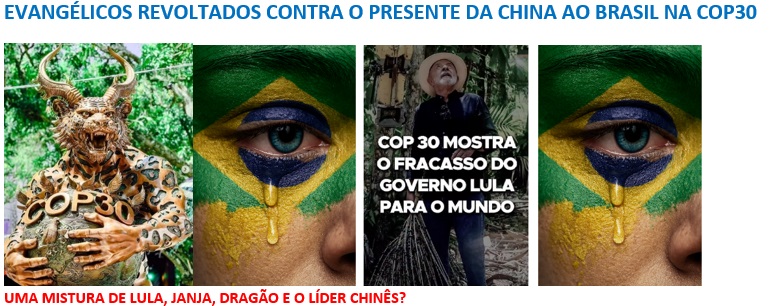 Um presente entregue pela China ao Brasil, durante a COP30, tem chamado atenção nas redes sociais, inclusive em páginas religiosas no Instagram. A obra denominada “Espírito Guardião Dragão-Onça”, criação da artista chinesa Hung Jian, foi apresentada em uma cerimônia pública, na área da Freezone Cultural Action (Praça da Bandeira), na tarde deste domingo, 16, como símbolo de proteção da floresta tropical. O dragão, símbolo forte da cultura chinesa, representando sorte, riqueza e nascimento do novo, está retratado na escultura junto com a onça, animal com forte simbolismo em meio a Amazônia. Essa junção caracteriza a cooperação dos dois países na agenda climática global, segundo os dados da Veja.
