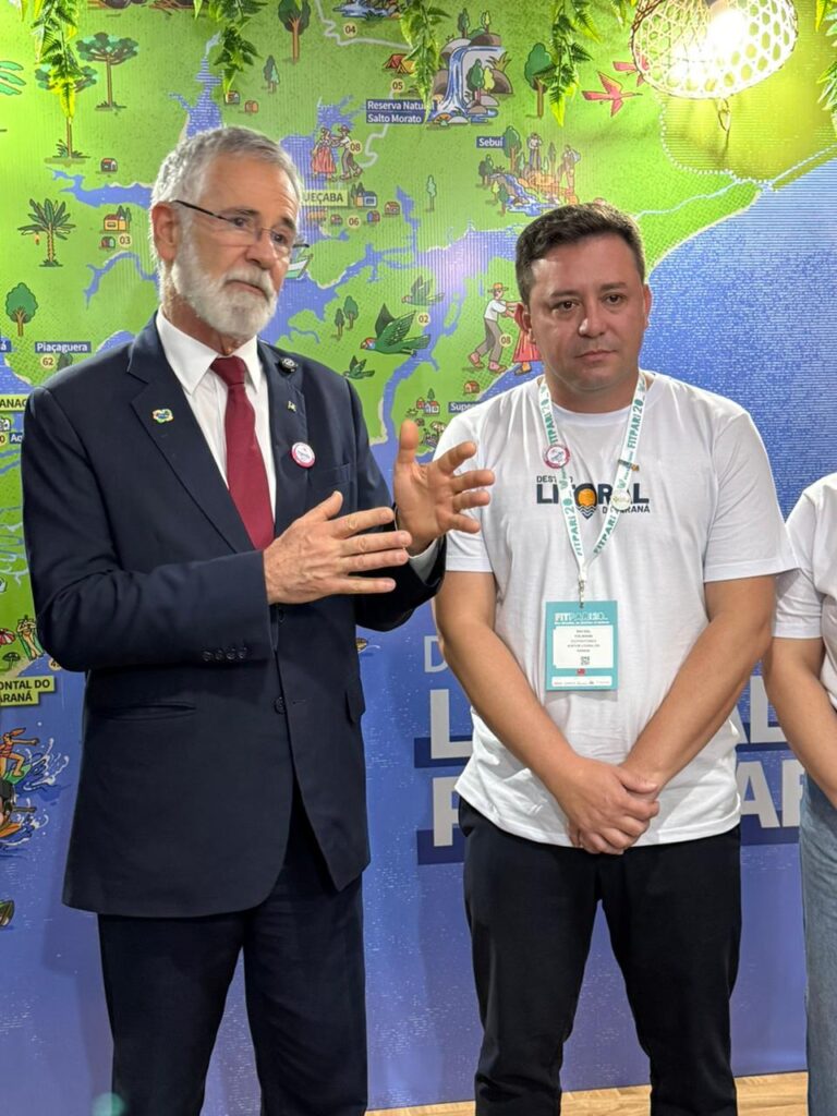 A Adetur Litoral esteve presente na FITPAR com o propósito de divulgar o Litoral do Paraná e posicionar a região como um destino completo e atrativo para o público internacional. Durante o evento, a entidade destacou as belezas naturais, a diversidade de experiências e o potencial econômico do território. A comitiva contou com integrantes da entidade e reforçou a divulgação dos sete municípios litorâneos: Antonina, Guaraqueçaba, Guaratuba, Matinhos, Morretes, Paranaguá e Pontal do Paraná. Entre os presentes, destacou-se o prefeito de Pontal do Paraná, Rudão Gimenes, que acompanhou as atividades da feira ao lado do presidente da Adetur Litoral, Rafael Folmann.