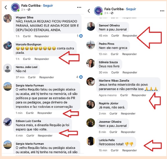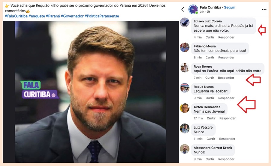 Uma consulta no site “FALA CURITIBA” é suficiente para ver o tamanho da rejeição adquirida ao longo do tempo da família Requião na política. Ao perguntar se Requiãozinho pode ser o governador do Paraná, uma chuva de xingamentos e ataques relembram o passado desta dupla. O pai, Roberto Requião, que foi escanteado pelo PT, juntamente com o filho tiveram apena uma única alternativa que foi se abrigar com a esquerda, através do PDT ligado ao governo Lula e, tem um bom fundo eleitoral para alavancar as campanhas familiares. Sem saída, eles já estão ansiosos para a campanha começar…