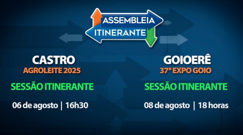 A Assembleia Legislativa do Paraná promove, nesta sexta-feira (8), em Goioerê, a 26ª edição da Assembleia Itinerante, iniciativa que integra