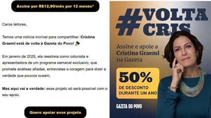 Read MoreQuem diria que a Gazeta do Povo iria fazer promoção para contratar a jornalista e política Cristina Graeml (sem partido)