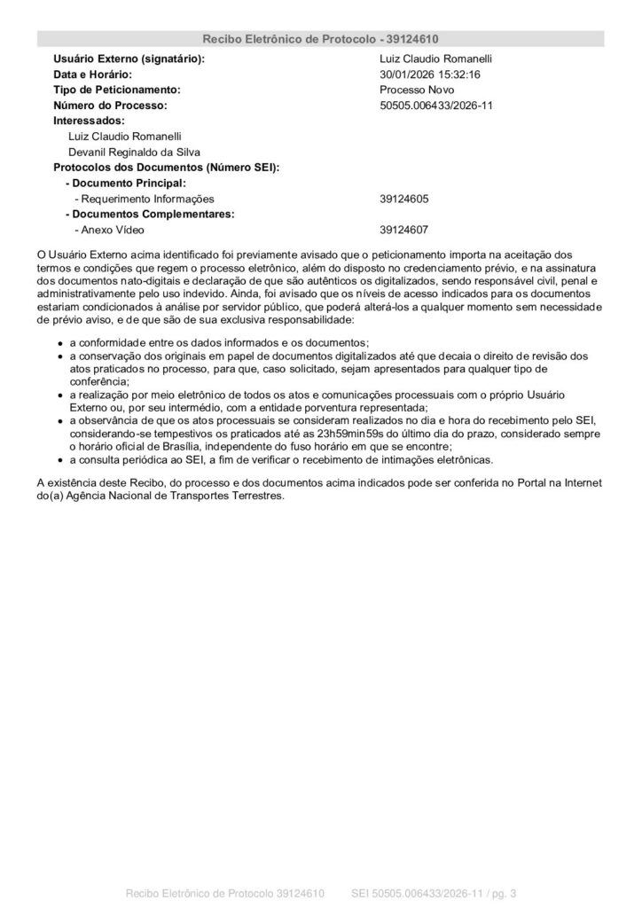 Os deputados Luiz Cláudio Romanelli (PSD) e Cobra Repórter (PSD) protocolaram na Agência Nacional de Transportes Terrestres (ANTT) um pedido de informações detalhadas sobre a implementação do sistema de cobrança eletrônica por pórticos, conhecido como free flow.