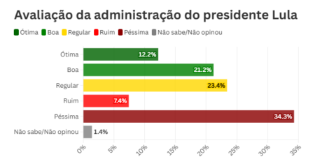 O levantamento também mediu a avaliação geral da administração federal. Segundo os dados: