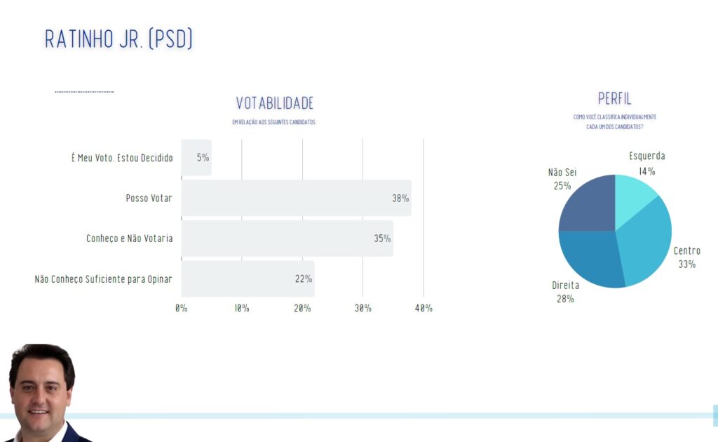 Na comparação geral do índice de volatilidade, Ratinho Junior aparece com 43% dos entrevistados afirmando que votariam ou poderiam votar nele, o segundo melhor resultado do levantamento, atrás apenas de Lula, que soma 50%. Flávio Bolsonaro registra 38%, Caiado 37% e Eduardo Leite, 34%.