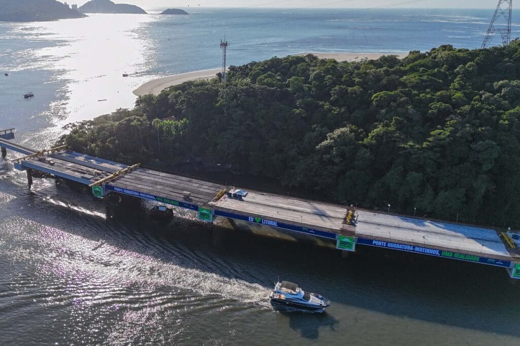MODERNIDADE – Quando concluída, a Ponte de Guaratuba será uma estrutura moderna e completa, projetada para atender às necessidades da população e do turismo na região. “Estamos dentro do prazo estipulado. Isso acontece porque fizemos um projeto muito sólido e porque temos quase 700 trabalhadores aqui se esforçando diariamente para entregar este sonho de todos os paranaenses, especialmente daqueles do nosso Litoral”, disse Ratinho Junior.