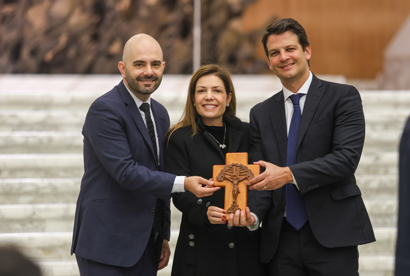 Em homenagem aos 200 anos de relações diplomáticas entre o Brasil e o Vaticano, Eduardo Pimentel entregou ao papa uma cruz produzida com a terra proveniente do Bairro Novo do Caximba.