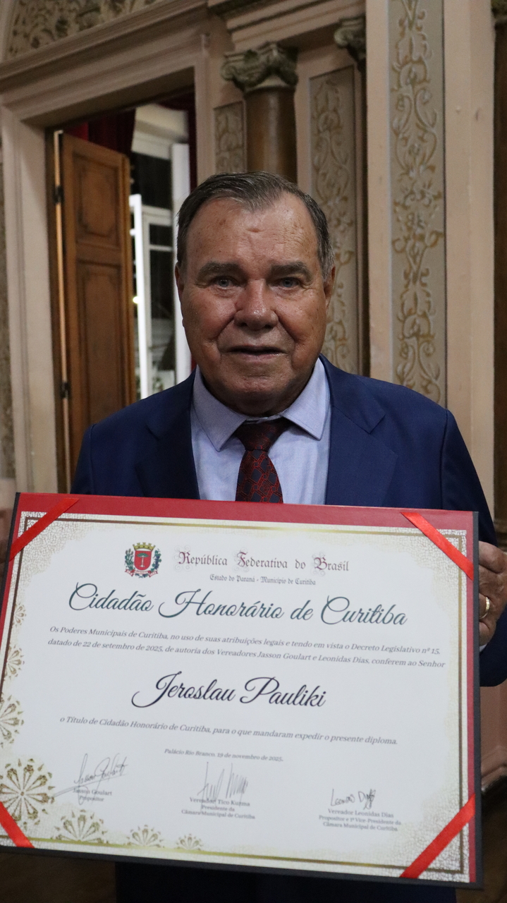 | O fundador e presidente do Grupo MM, Jeroslau Pauliki, recebeu o título de cidadão honorário de Curitiba, na noite da última quarta-feira (19), em solenidade realizada na Câmara Municipal. A homenagem foi proposta pelos vereadores Jasson Goulart (Republicanos) e Leonidas Dias (Pode), após ter sido aprovada por unanimidade pelos parlamentares.Em seu discurso, Jeroslau destacou a emoção de receber a honraria na capital paranaense. “Receber hoje o título de Cidadão Honorário de Curitiba é uma emoção difícil de traduzir em palavras. Esta cidade, que sempre admirei pela sua organização, inovação e qualidade de vida, passa agora a fazer parte oficial da minha história e eu só posso responder a isso com gratidão, respeito e um compromisso cada vez maior com o seu desenvolvimento”, afirmou.Nascido em Arapoti (PR), mudou-se ainda jovem para Ponta Grossa, onde constituiu família ao lado de Cirlei Simão Pauliki. Foi em 1978, aos 34 anos, que decidiu abrir uma pequena loja de móveis, iniciativa que daria origem a um dos maiores grupos varejistas do país. Hoje, o Grupo MM está entre as 15 maiores redes de eletromóveis do Brasil, com mais de 230 lojas em diversos estados, capilaridade nacional por meio do e-commerce e do atacado, além da forte presença em Curitiba e região metropolitana.Durante a homenagem, Pauliki ressaltou a importância da capital paranaense para o crescimento da empresa. “Curitiba sempre representou progresso, gestão eficiente e qualidade de vida, valores esses que procuramos refletir em cada decisão, cada loja, cada atendimento e cada membro da nossa equipe. Se há algo que aprendi, é que nenhuma empresa cresce apenas com produtos, tecnologia ou expansão. Uma empresa cresce porque desenvolve pessoas. E esta cidade tem sido um celeiro de talentos”, pontuou.O governador do Paraná, Carlos Massa Ratinho Junior, exaltou a trajetória do empresário. “Venho falar de uma pessoa muito importante do Paraná, um dos maiores empresários do nosso Estado, que tem uma história de vida maravilhosa e construiu um grupo que gera muito emprego. Seu Jeroslau é uma daquelas personalidades que venceram pelo suor, trabalho, visão de futuro e paixão em atender o público”, ressaltou.Pauliki agradeceu aos vereadores pelo reconhecimento e destacou, ainda, a importância dos mais de 3 mil colaboradores do Grupo MM, afirmando que eles são o coração da empresa e fundamentais para todas as conquistas alcançadas. Ele também reforçou sua gratidão aos mais de 600 mil curitibanos que confiaram na MM nos últimos anos, ressaltando que cada cliente contribuiu para a consolidação da rede na capital. |
