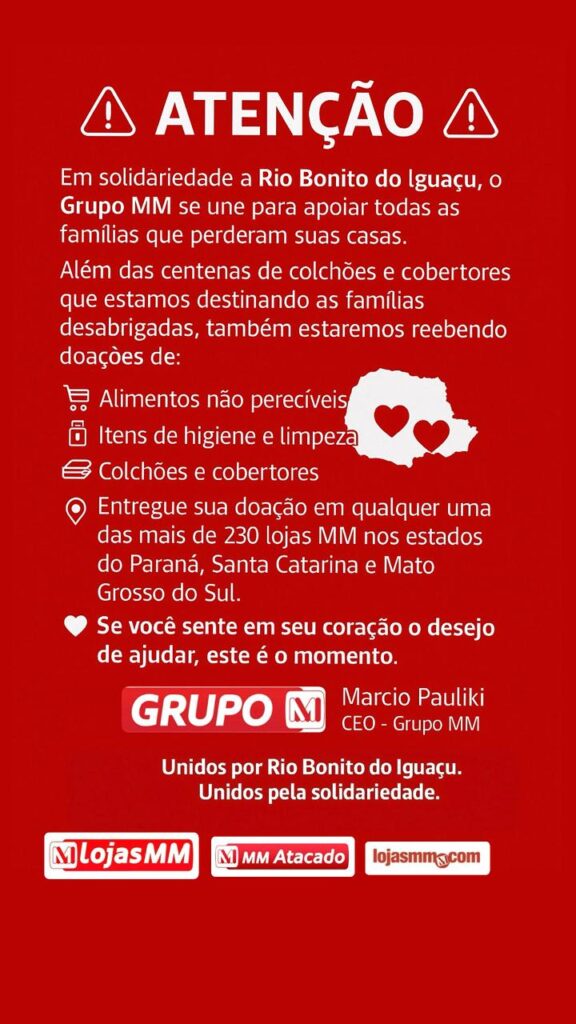 GRUPO MM ESTÁ RECEBENDO DOAÇÕES E ENCAMINHANDO ATÉ RIO BONITO DO IGUAÇU COM SEUS CAMINHÕES.