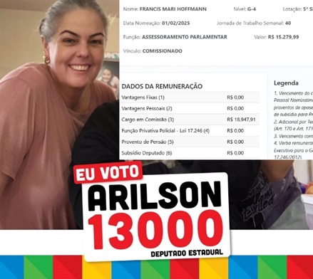 IRMÃ DE GLEISI HOFFMANN ESTÁ NOMEADA NO GABINETE DE ARILSON CHIORATO (PT)