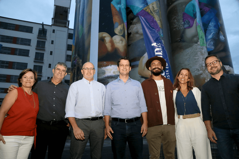 Piermartiri ressaltou que a empresa tradicional de Curitiba decidiu inovar ao estampar seus silos vistos à distância para presentear a cidade e simbolizar sua constante modernização.