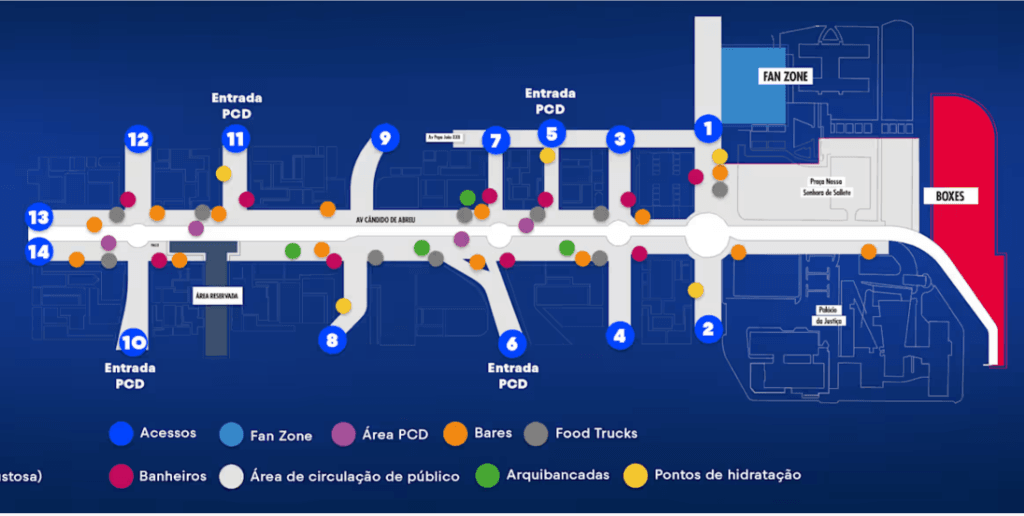 A estrutura do evento estará aberta a partir das 12h e as apresentações estão previstas para começarem às 14h. O acesso do público poderá ser realizado por entradas espalhadas ao longo da Avenida Cândido de Abreu. SAIBA MAIS AQUI.