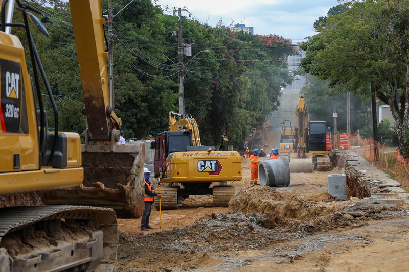 Já na Rua Eloi Orestes Zeglin estão em andamento serviços de escavação, drenagem e preparação da nova pavimentação que será em concreto. Neste momento os trabalhos estão concentrados em frente à Praça Zumbi dos Palmares, que futuramente será incorporada ao novo Parque África.