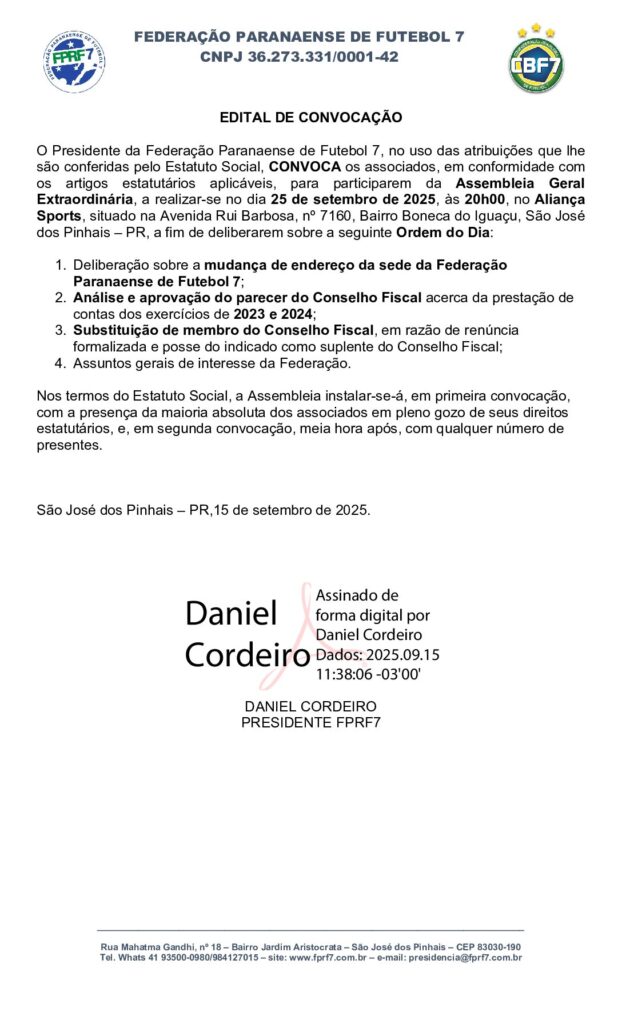 PUBLICAÇÃO LEGAL: EDITAL DE CONVOCAÇÃO ASSEMBLEIA GERAL FEDERAÇÃO PARANAENSE DE FUEBO 7