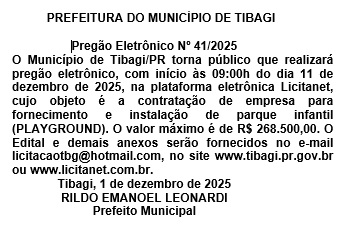 PUBLICAÇÃO LEGAL : PREFEITURA DO MUNICÍPIO DE TIBAGI – PREGÃO ELETRÔNICO nº 41/2025