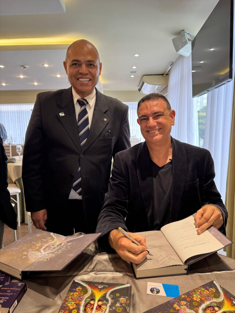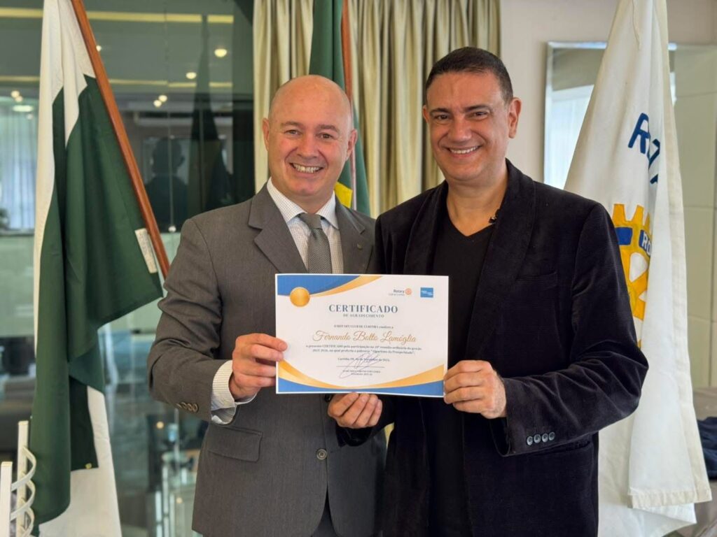 A Mesa Diretiva foi composta pelo presidente do ano rotário 1991-1992, advogado Werner Egon Schrappe (ex presidente da Associação Comercial do Paraná – ACP), pelo palestrante e psicólogo Fernando Botto Lamóglia, psicólogo e advogado, com mestrado e doutorado em Educação, que ministrou sobre o tema e autografou seu novo livro – O Algoritmo da Prosperidade – que revela, com precisão e sensibilidade, os 10 pilares essenciais para conquistar uma vida de plenitude, realização e abundância — em todas as áreas; a obra integra neurociência, alma e experiência prática, traduzindo conceitos complexos em estratégias aplicáveis à sua vida real.