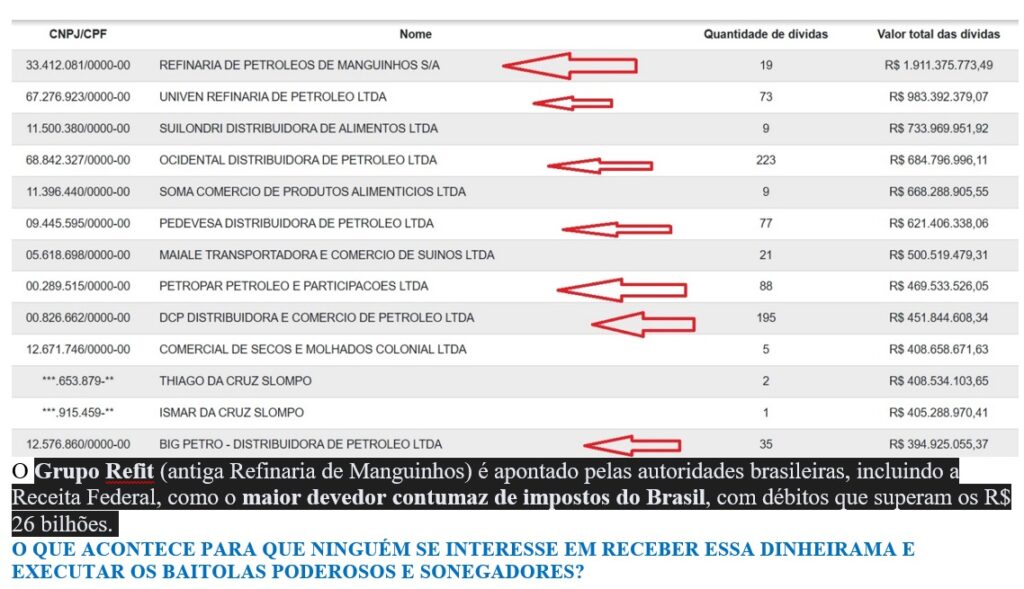 O que aconteceu com a Secretaria de Estado da Fazenda que permitiu a inscrição de empresas como Distribuidoras de Petróleo, Importadoras de Petróleo e Combustível, Revendedoras e até a Refinaria de Manguinhos – hoje REFIT, (maior devedora), que esteve envolvida na Operação Carbono Oculto ficar devendo quase R$ 2 bilhões ao Paraná e outras petroleiras que deitaram e rolaram até o ano de 2017, só aumentando a dívida. Por que a cobrança disso ficou parada? Por qual conveniência?