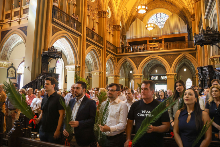 O prefeito Eduardo Pimentel participou na manhã deste domingo (29/3), da missa de Domingo de Ramos na Catedral Basílica Menor de Nossa Senhora da Luz